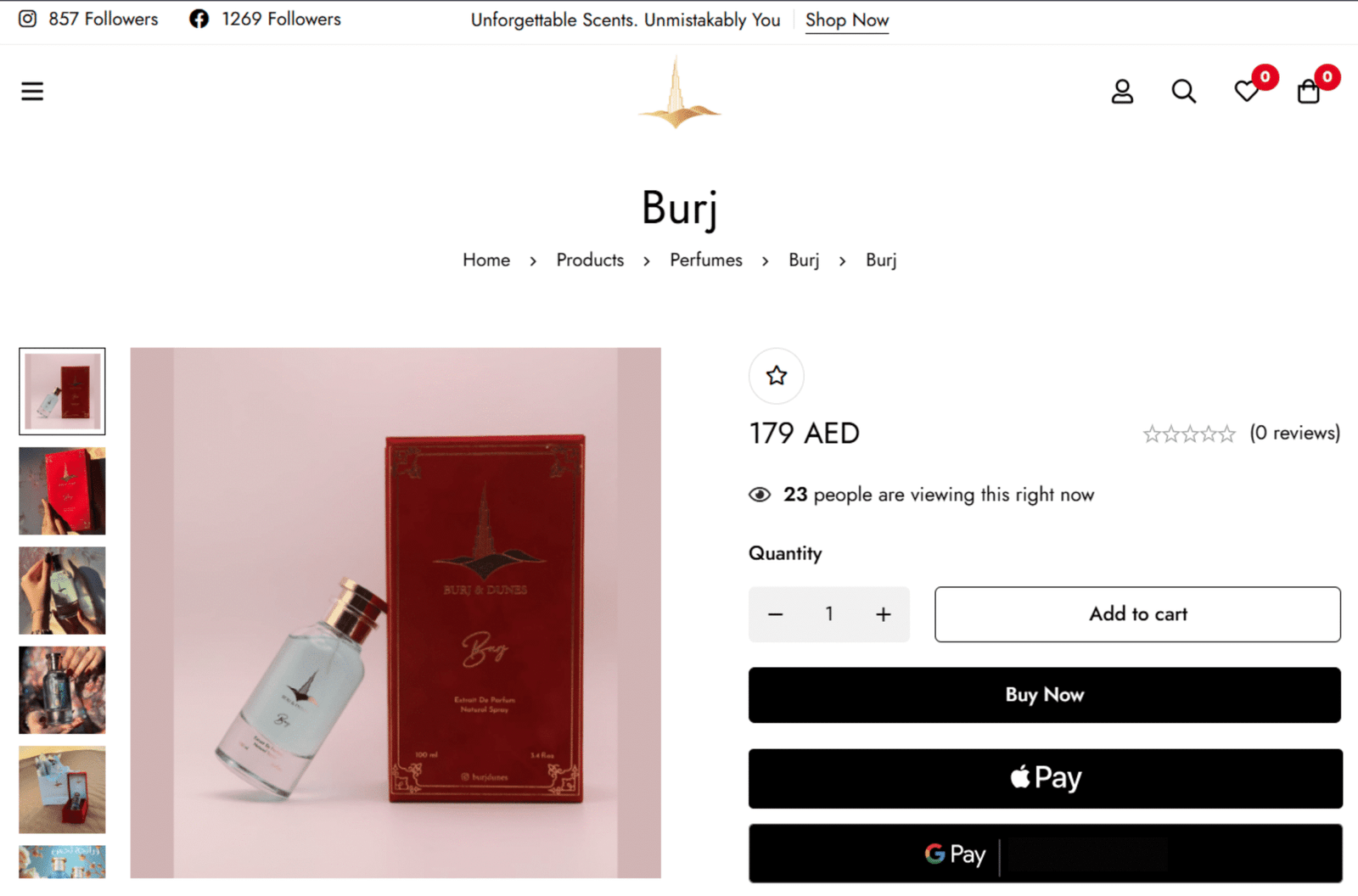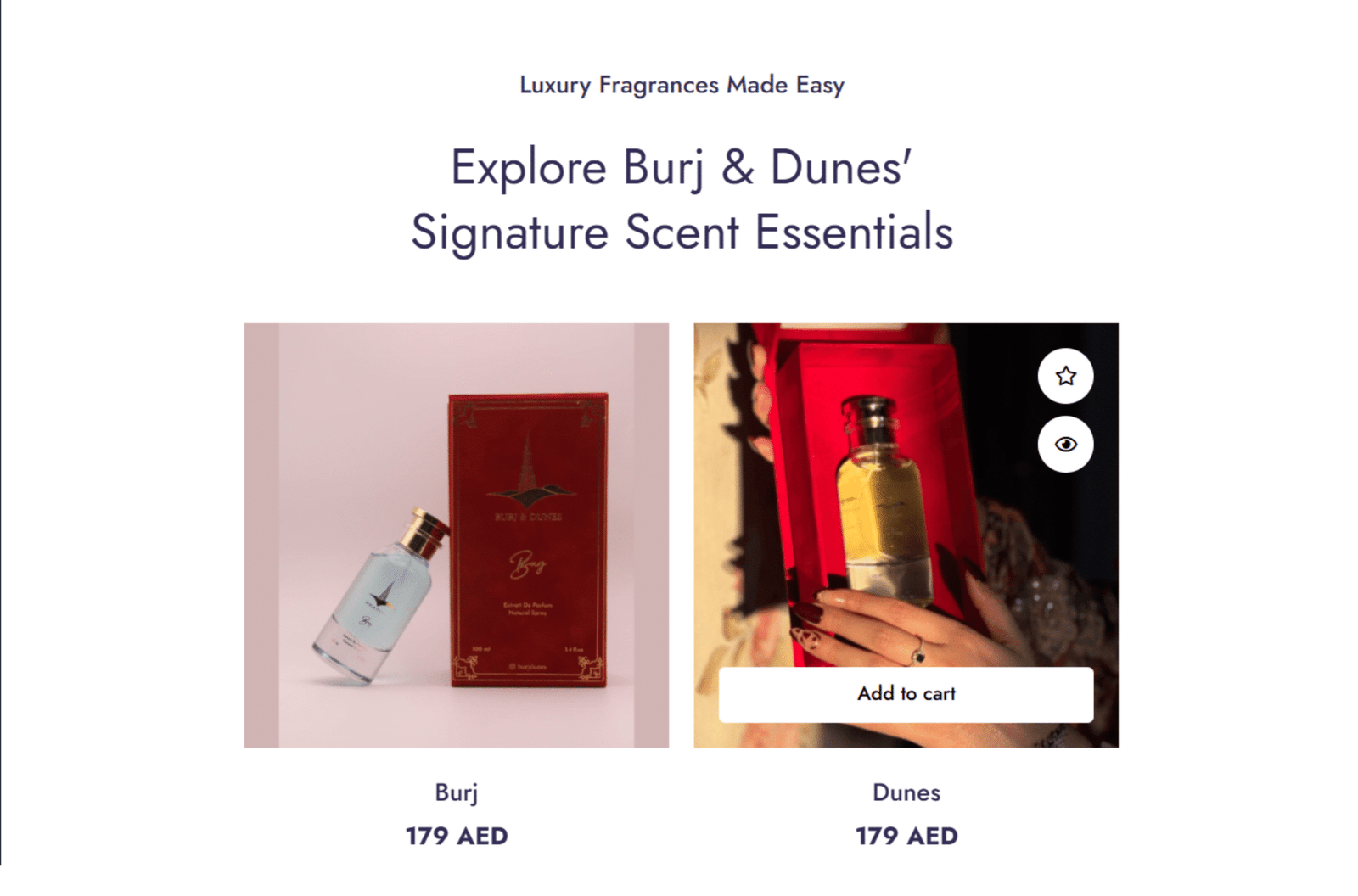 I craft exquisite online experiences for luxury fragrance brands. For Burj & Dunes, I created an elegant digital boutique showcasing their signature scents (Burj and Dunes) with immersive storytelling. The result? A sophisticated, conversion-optimized store that reflects the brand's UAE heritage while delivering seamless global commerce.